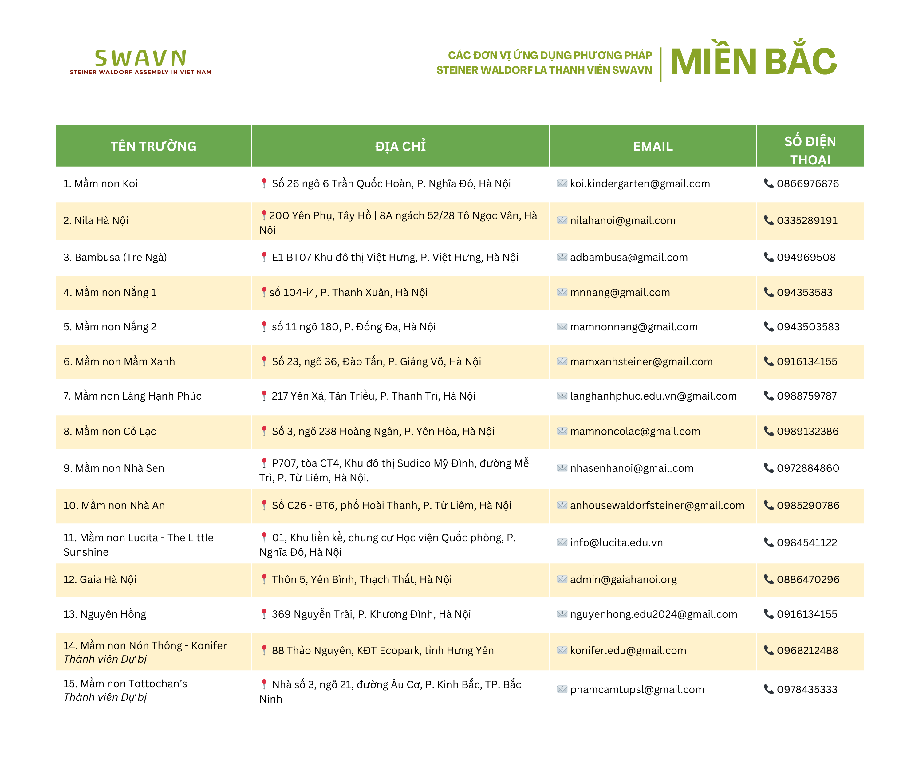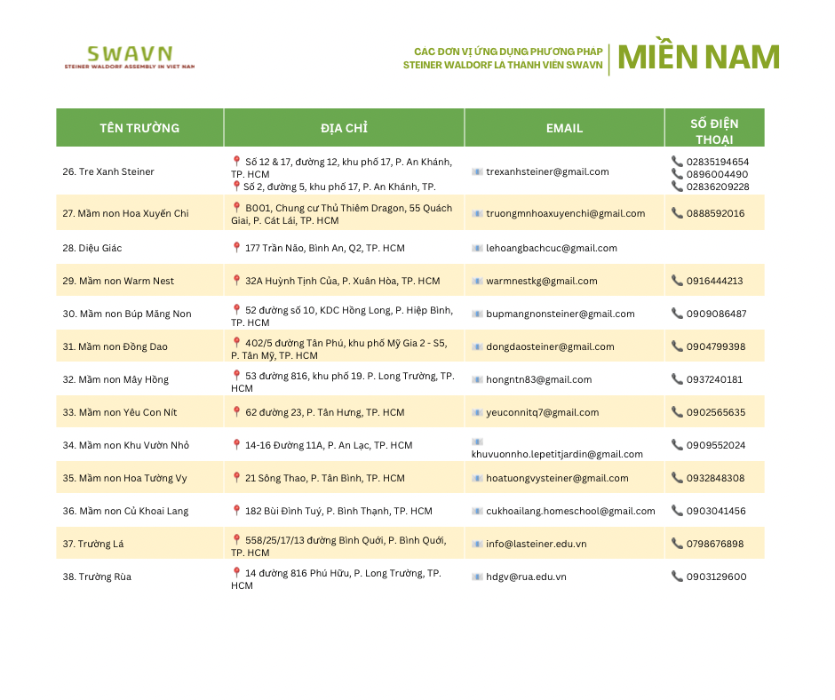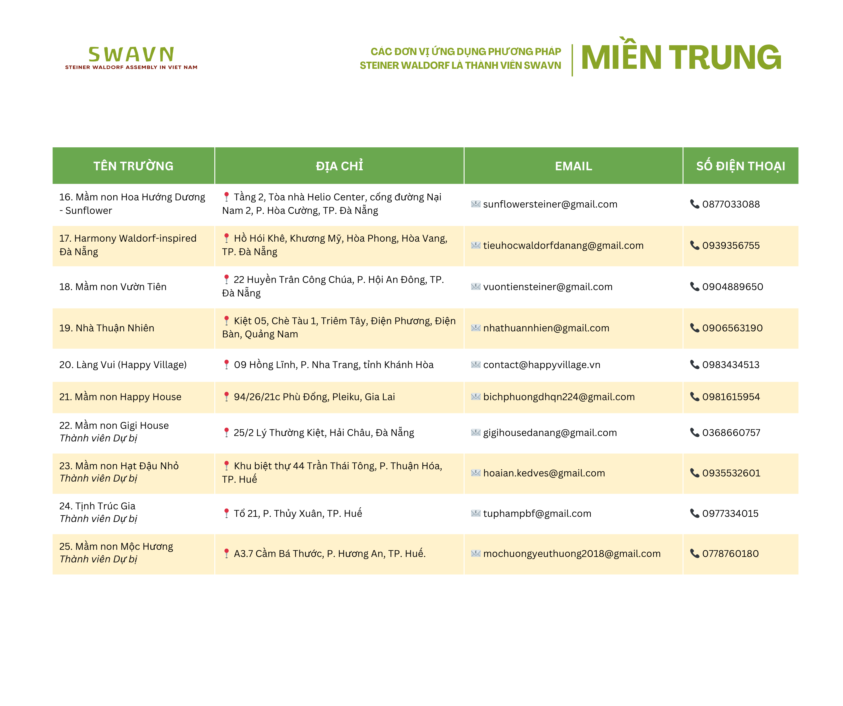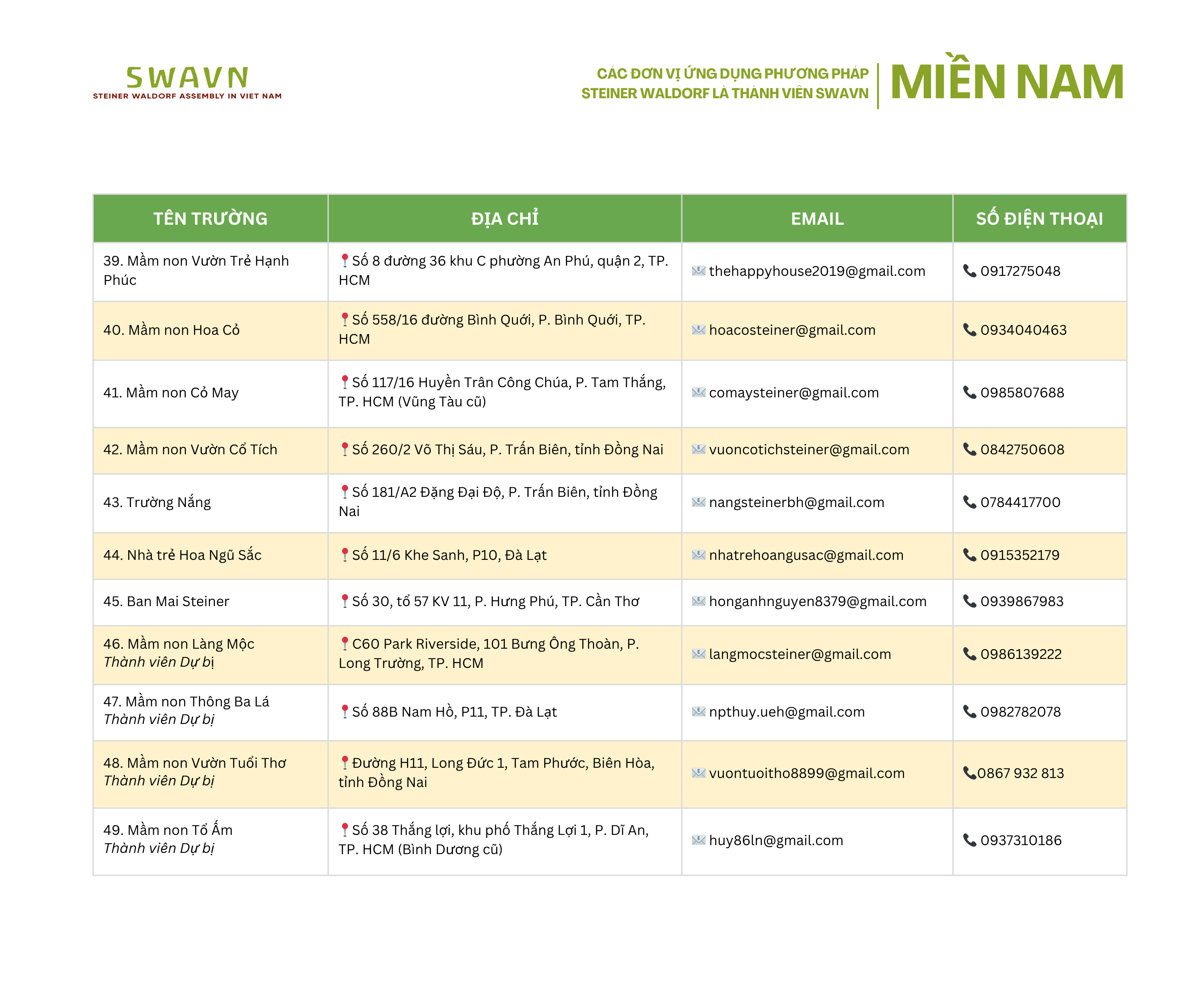 DANH SÁCH THÀNH VIÊN SWAVN - CỘNG ĐỒNG STEINER WALDORF VIỆT NAM-